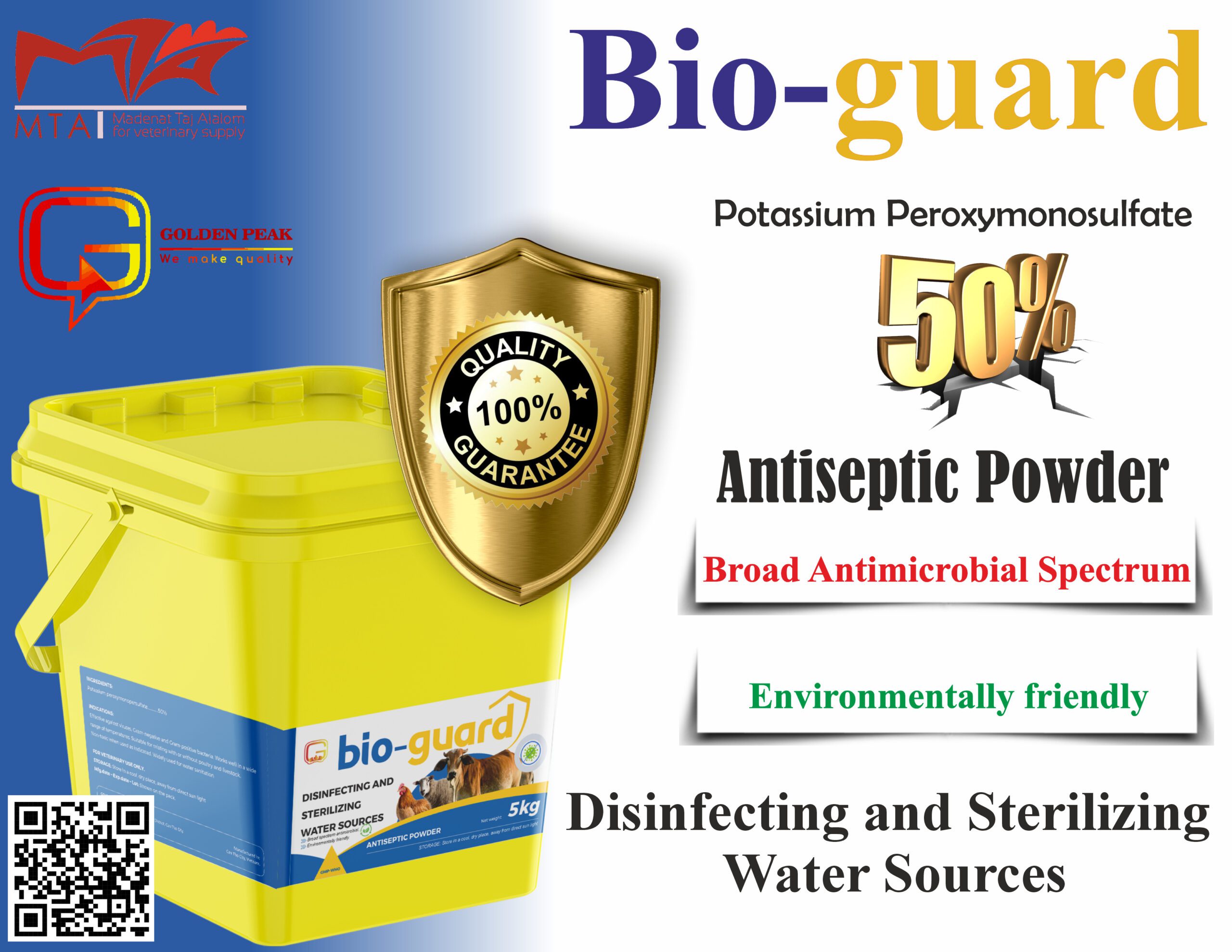 - Fogging: 1:100 (10 g per liter), use a mechanical device.General directions:Add BIO-GUARD powder to water in a clean plastic tub and mix until fully dissolved. The colour goes pink first andthen light yellow/golden on the release of biocidal power; the product is now ready to use. Make a fresh solution eachtime and start from the top and work to the walls and floor.